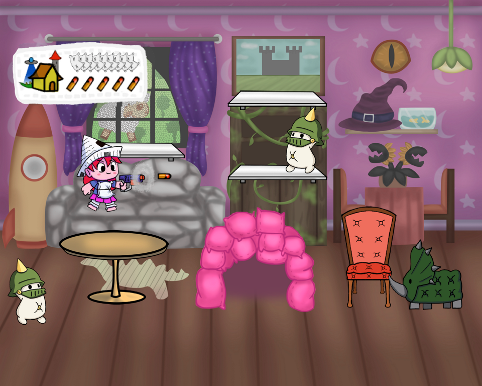 The game is a journey through a kid's imagination. Don't let the fantasy fade into the real world. Keep the adventure going by defeating the dangerous enemies inside the house. Beat magic creatures to collect materials to build up your pillow fort, until it is strong enough…